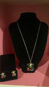 Set of necklace and 2 earrings. Stainless steel color bear seat. TT.